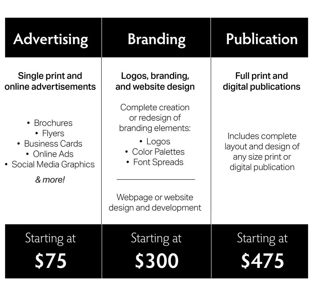 Exact prices determined by project scope and timeline. Pricing breakdowns follow free consultation sessions to determine your exact needs!